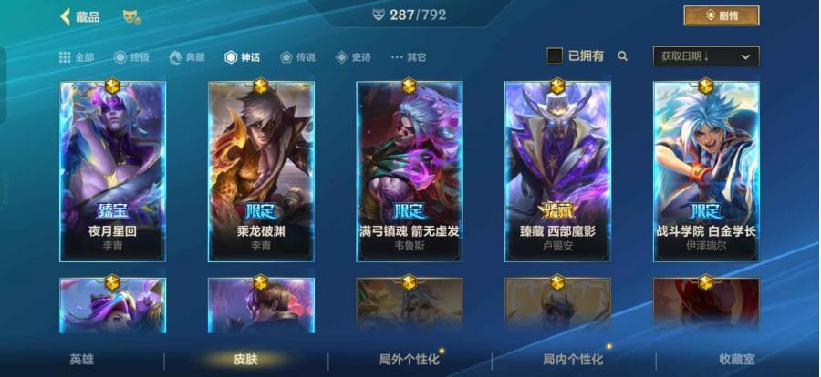 96皮肤 87英雄 黄金¥998.00